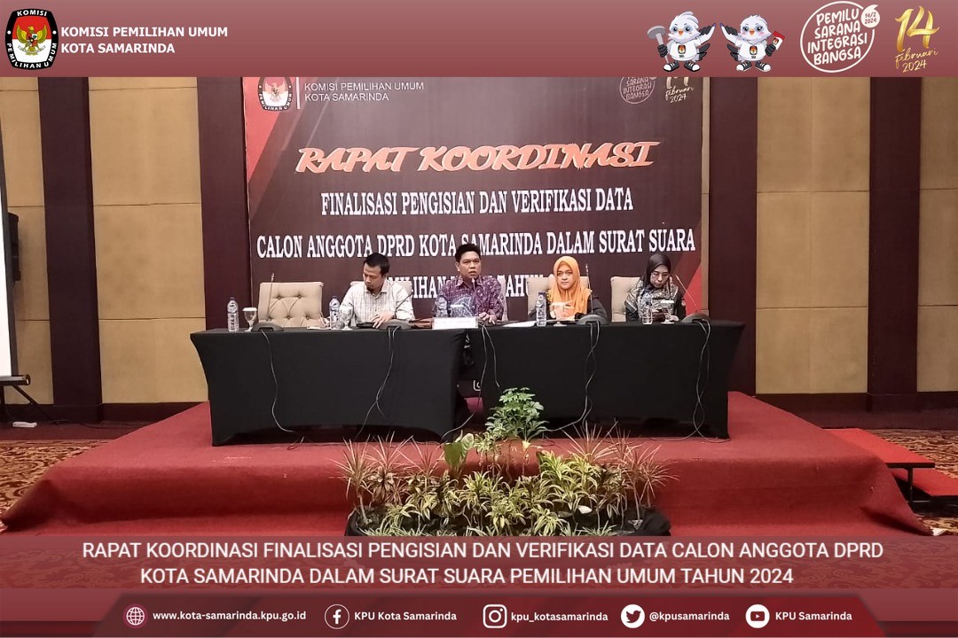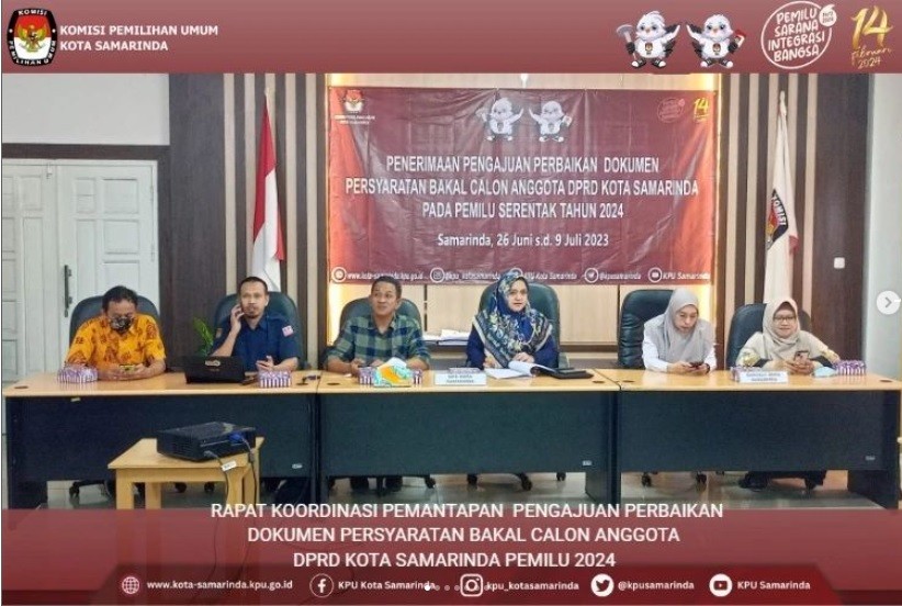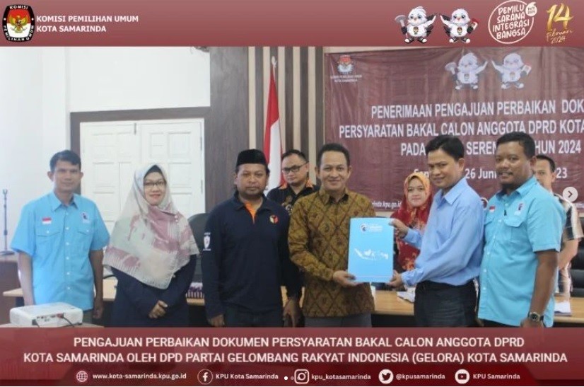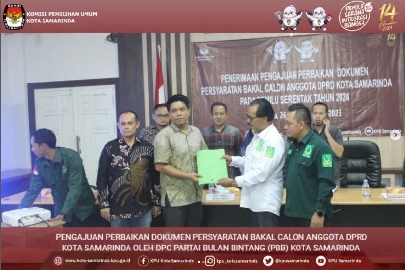 Delegasi partai diterima oleh Ketua KPU Kota Samarinda Firman Hidayat, Anggota KPU Ihsan Hasani, Nina Mawaddah, Najib, dan Dwi Haryono, disaksikan oleh Bawaslu Kota Samarinda, di Ruang Aula KPU Kota Samarinda.